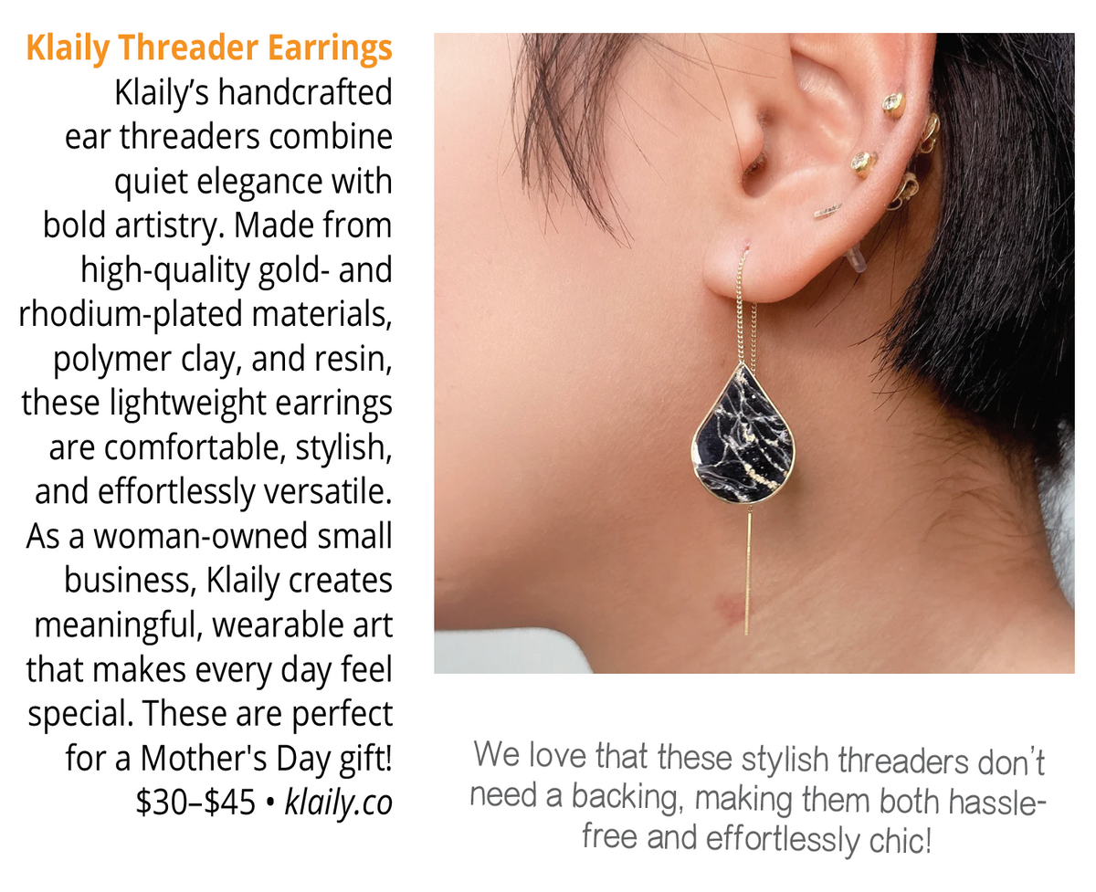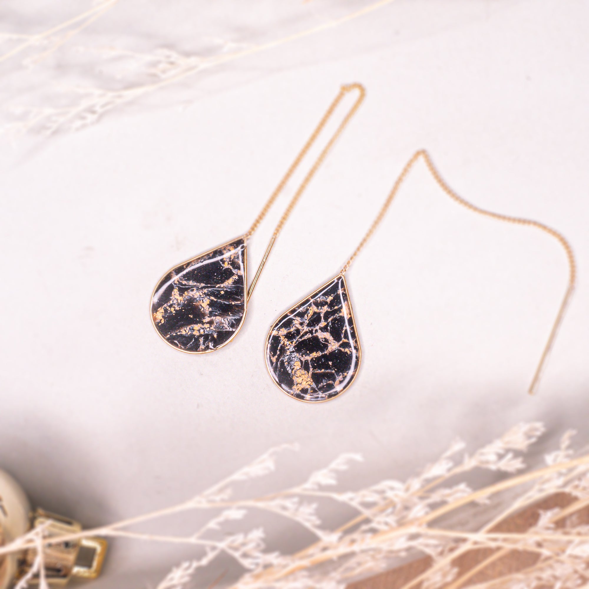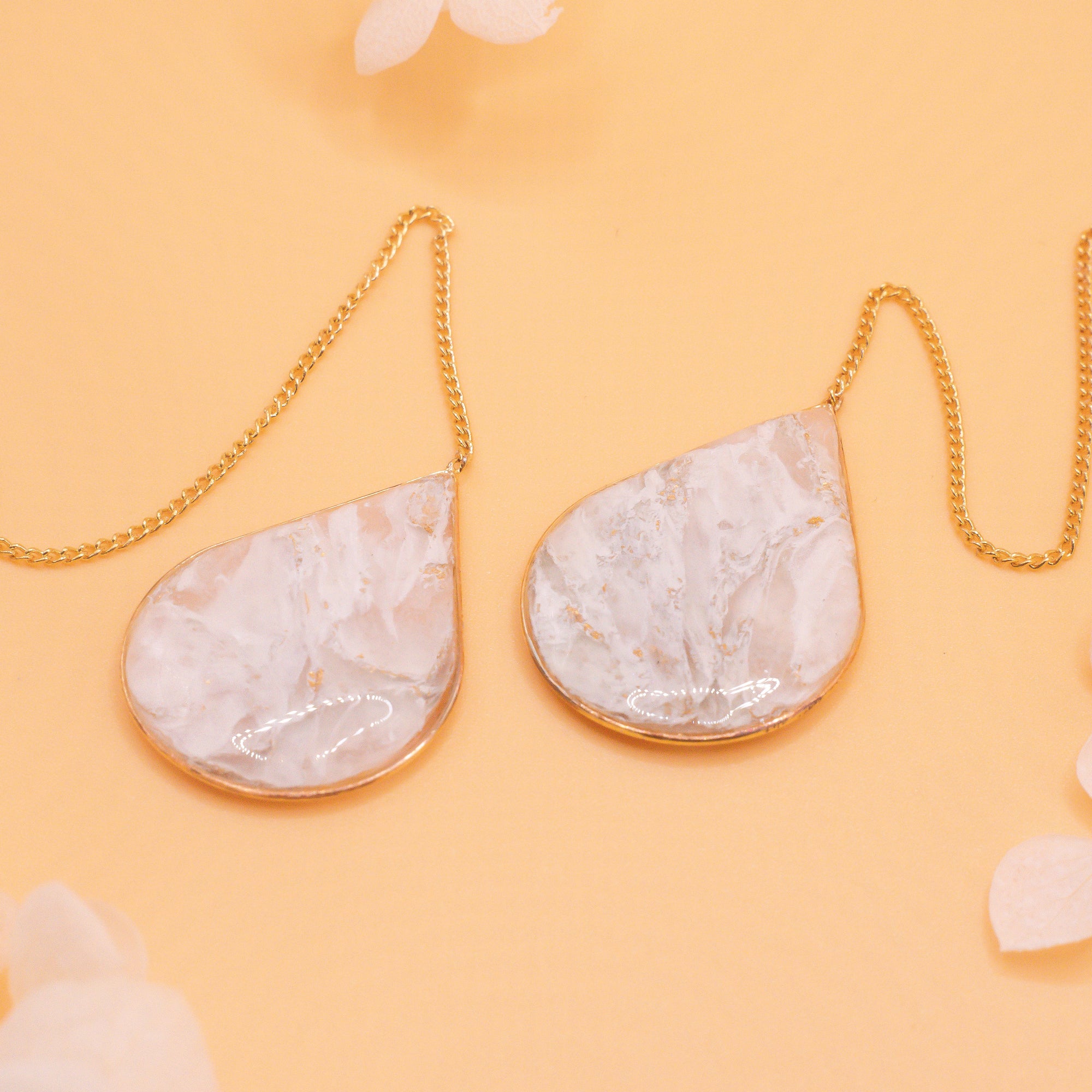 Klaily polymer clay earrings are stunning marble ear threaders. Beautiful, bold, and featherweight, they offer effortless elegance.