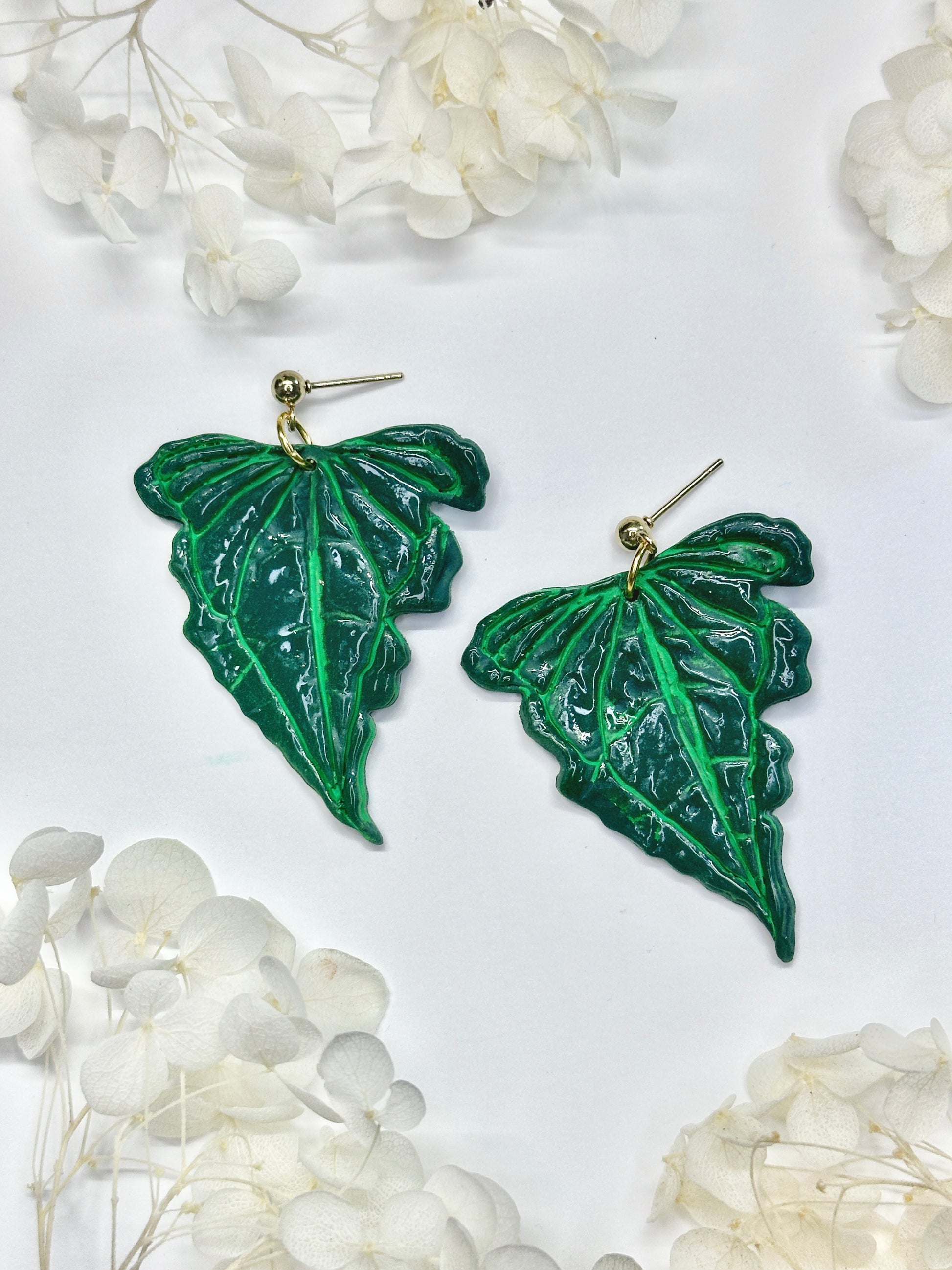 Bold, sculptural, and richly detailed — the Anthurium ‘Delta Force’ Earrings are inspired by the striking texture and deep veins of this rare cultivar. Finished with a glossy sheen that mirrors the natural luster of real leaves, they bring a lush, tropical elegance to any outfit.