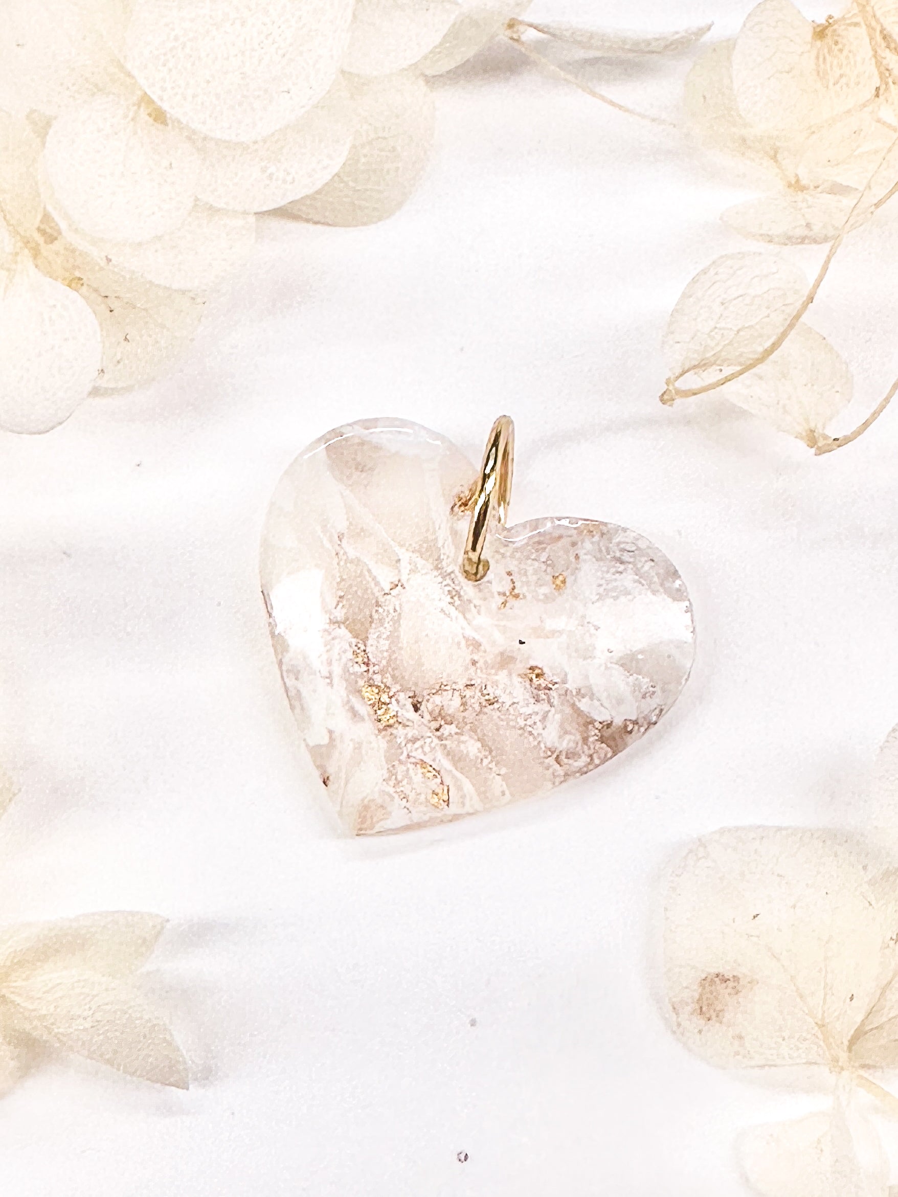 ~19mm handmade charm made with translucent polymer clay, alcohol ink, gold flakes & resin. Wear alone or pair with Klaily teardrop hoops or necklace (sold separately). Leave a note if you prefer a silver jump ring.